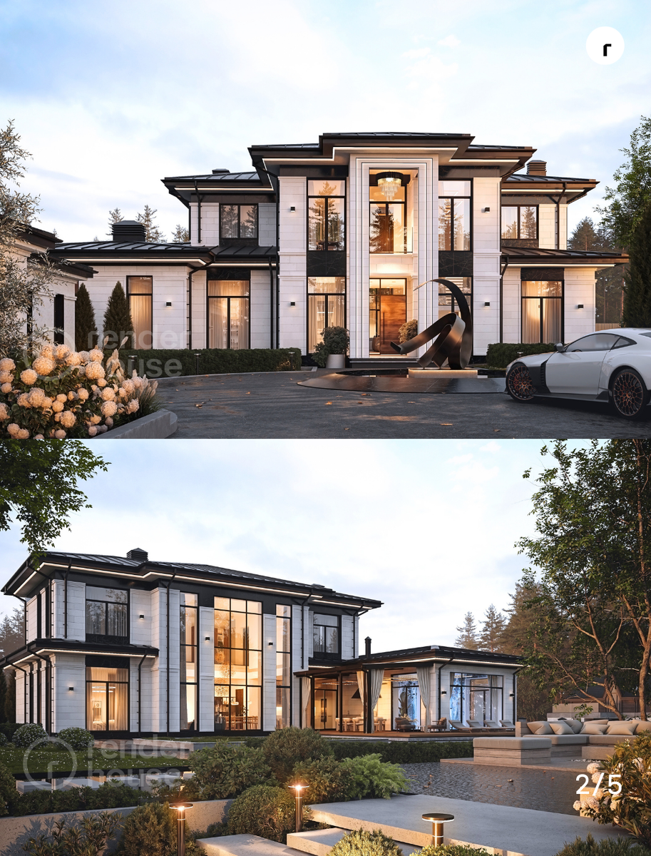 ЛЕТОВО — проект дома 426 м² в стиле неоклассики, где выдержан баланс архитектурных и планировочных решений. Для заказчицы это был не первый опыт взаимодействия с проектированием, поэтому требования к архитектуре и качеству решений были сформулированы сразу: дом без лишних площадей, но с ощущением статуса и сдержанной роскоши, присущей классической стилистике в архитектуре. ▪️ Изначально рассматривался классический стиль, однако важно было избежать тяжеловесности и устаревших приёмов. Поэтому была выбрана неоклассика — с выверенными пропорциями, чистыми линиями и актуальными материалами. Такой подход позволил создать дом, который выглядит элегантно и при этом остаётся современным. ▪️ Особое внимание уделено организации приватного внутреннего пространства. В проекте предусмотрены бассейн и крытая терраса, ориентированные во внутренний двор. Это решение формирует зону отдыха, защищённую от внешних взглядов, и делает террасу логичным продолжением жилых помещений. ▪️ Фасады выполнены из с