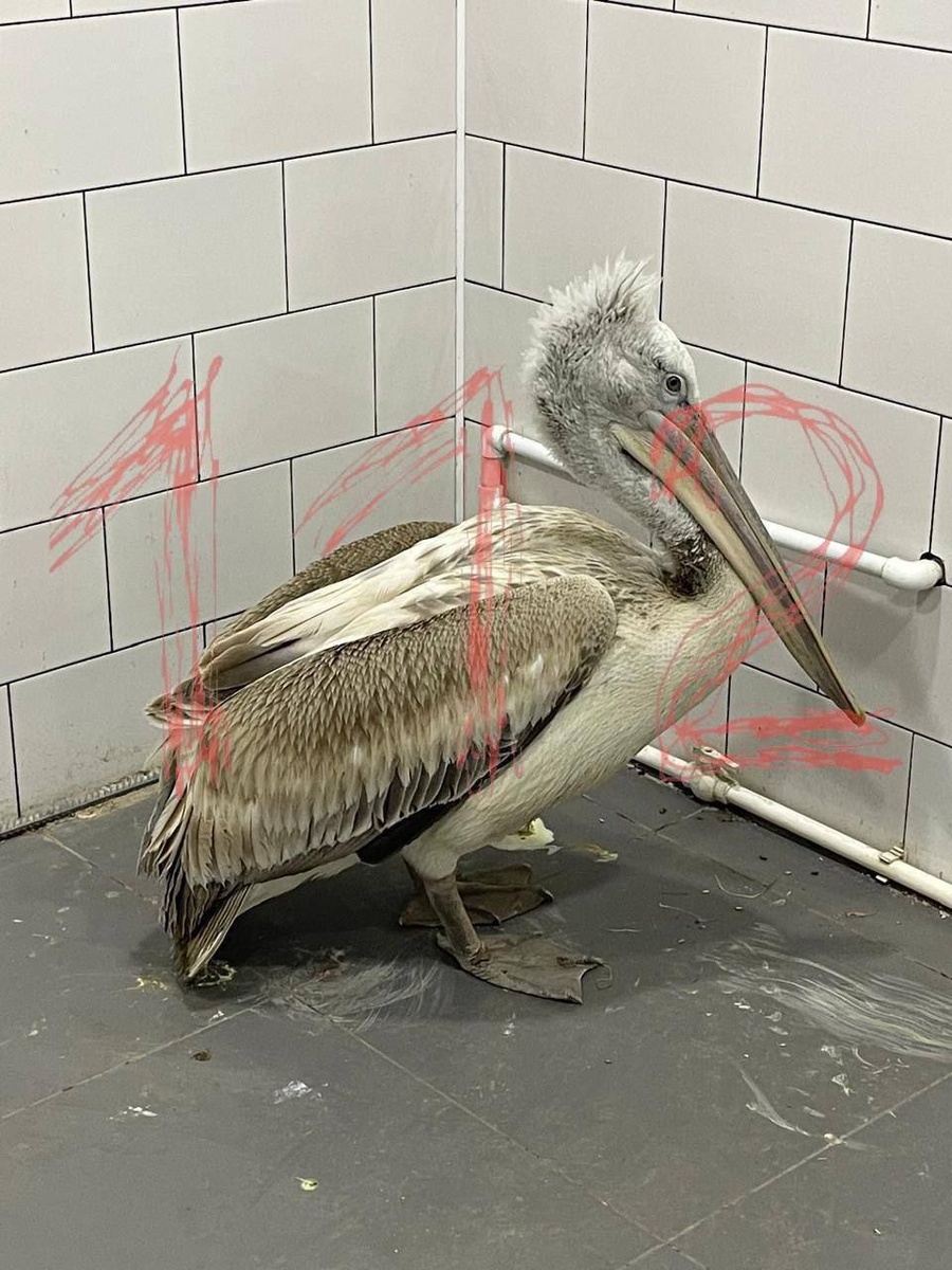 Замерзшего пеликана спасли из ледяного плена и отправили жить в парк «Малинки