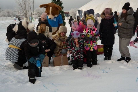 Участники праздника играли в хоккей с мячом, соревновались в подвижных играх и конкурсах, а также рисовали красками на снегу. На площадке была установлена новогодняя ёлка и снежные фигуры, которые создали атмосферу зимнего праздника. Для детей работали аниматоры.