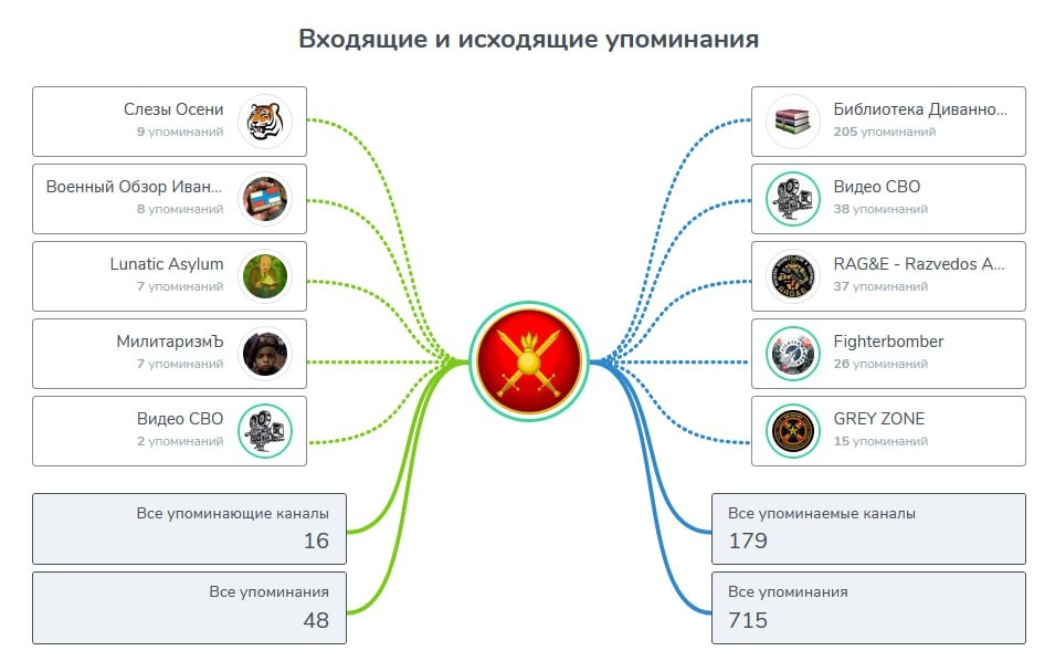 : 1. "Слезы Осени" @slezi_na_ochah - авторский канал настоящего ваени, виртуально знакомы в нашем уютном чатике 2. "Военный Обзор Иван Савин" - @VoenObzorTelega (Иван в представлении не нуждается и даже сегодня уже поминался добрым словом на канале) 3. Lunatic Asylum @FerrumWorld - ничего не могу сказать, пойду хоть сам почитаю, что за канал. Справа на картинке видно ,кто дает наибольшую пищу для кринжа размышлений. Библиотека | Чат | Карты