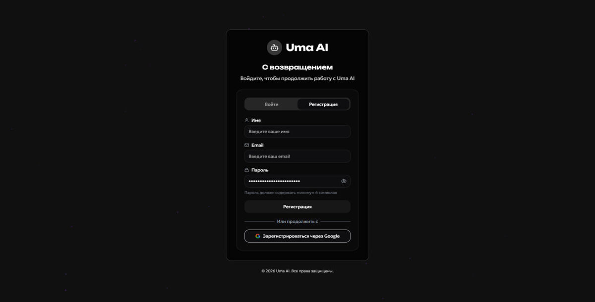 Заходим на Uma AI и регистрируемся, иначе сгенерировать не получится, тут ничего сложного нет. В левой части экрана из вылетающего меню выбираем раздел 'Изображение'. Теперь нужно выбрать модель Nano Banana Pro так как она лучше всех подходит для преобразования и написать этот промпт в специальном окне.