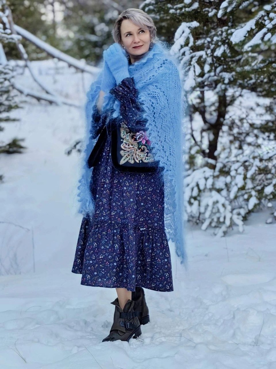 Еще несколько лет назад пуховый платок считали атрибутом прошлого столетия, но в новом сезоне ситуация обстоит иначе, и теперь шаль ажурной вязки хотят абсолютно все. С одной стороны, популярность этого аксессуара обусловлена ностальгией по прошлому и возвращением к истокам. С другой, — белый пуховый платок — один из главных элементов трендовой эстетики à la Russe, особенно на зимних свадьбах. А еще существует огромное количество стилизаций этого аксессуара. Поэтому шаль ажурной вязки окупает себя в тысячекратном размере🔥🔥🔥 Представленная ажурная шаль " Покров " - это не рядовой handmade , это штучное рисунчатое изделие с великолепным длинным и легким пухом , "расписным " , густым , плотным узором . Все полотно платка украшено белыми морозными листьями , которые словно кружатся в пуховом облаке , закруженные матушкой - метелицей , лаконичная зубчатая решетка каймы завершает композицию