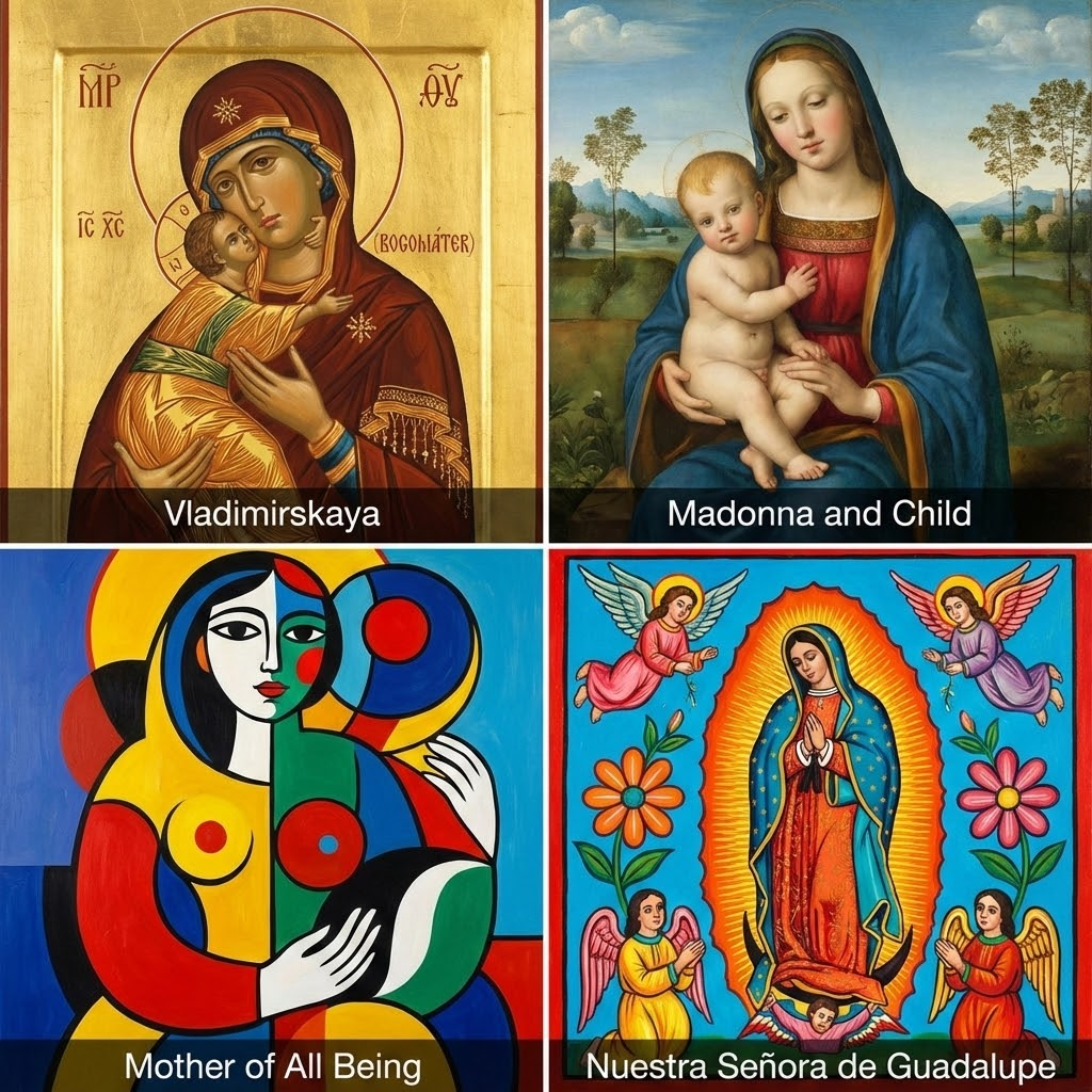 Вообще в христианстве, кроме протестантов конечно, Богородица или Святая Мария самая почитаемая фигура, наряду со Спасителем. Если говорить об иудаизме, исламе, буддизме и других вероисповеданиях, включая морально-нравственную систему кавказских народов - ХАБЗЕ, то у всех в том или ином виде присутствует почитание матери.