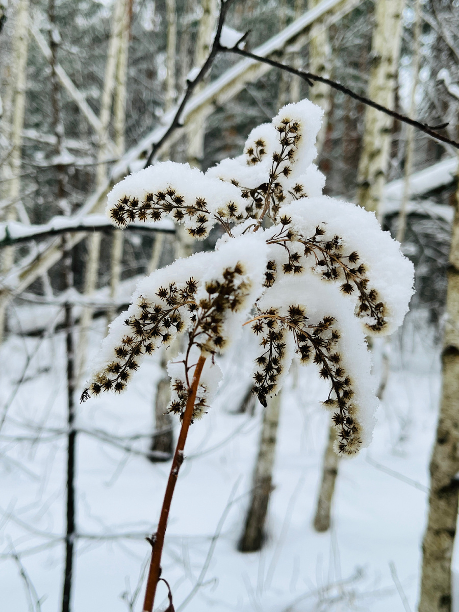 В лесу совсем нет ветра. Ни одна веточка, ни одна травинка не шелохнется. Удивительно. Ещё полчаса назад порыв ветра швырял мне ледяную крупу в лицо, пока я шла от подъезда до парковки. Словно я попала в другой день - полный штиль. Снег падает плавно и мягко, неощутим.