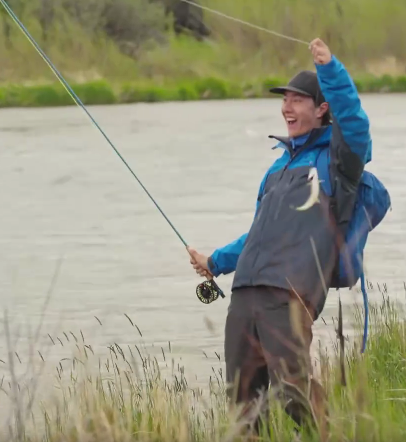 Раннее утречко - кто-то жарит бекон, а кто-то никак не проснется: Наша троица - Райдер, Джимми и Ибо - решила сегодня отдыхать и порыбачить. Ибо любит рыбалку и действительно устал - идет уже 36-й (или 37-й?) день путешествия. Отправились на реку - ловить на мушку. Долго ничего не ловилось, потом Ибо поймал крошечную рыбку - счастлив был так, словно килограммового лосося выловил! Но рыбку пришлось отпустить обратно в реку - слишком маленькая. Потом Джимми поймал приличную рыбину - Ибо кинулся помогать ее вытаскивать из воды и... упустил! Те еще рыбаки, да. Положение спас подошедший к ним посторонний рыбак, который немного пообщался, потом отошел рыбачить, и в конце концов подарил им несколько больших рыбин. Небольшое отступление про характер Ван Ибо: он, конечно, ярко выраженный интроверт, замкнутый и необщительный - сам это признал, когда комментировал эпизод с посторонним рыбаком. Говорил, что никогда первый ни с кем не заговорит. Во время путешествия с новыми людьми общаются обычно