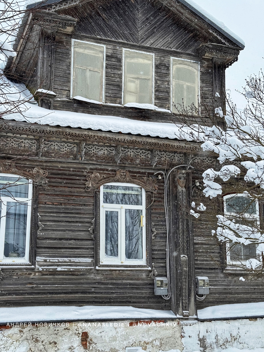 В Старице сохранилось одно из красивейших деревянных зданий города - дом №61 на улице Захарова. Он был построен в 1918 году Николаем Шабуниным — столяром-краснодеревщиком, человеком редкого таланта и трудолюбия. Шабунин возводил дом для себя и своей семьи, а семья была немаленькая — 12 человек. Просторное жилище делилось на две части: взрослую и детскую, а при доме располагалась мастерская. Именно здесь, вместе с учениками, хозяин создавал мебель, вырезал узорчатые наличники, делал сани и лыжи. Хозяйство было крепким: держали корову, лошадь, а двор был вымощен булыжником — признак достатка и основательности. Бревенчатый дом стоит на белокаменном фундаменте и выходит западным фасадом прямо на красную линию улицы. С юга к нему примыкала белокаменная ограда с арочными проездными воротами. Формально дом не относится к какому-то определенному архитектурному стилю, но именно в этом его особая прелесть: он выделяется сочным, выразительным декором, выполненным в лучших народных традициях. Одно