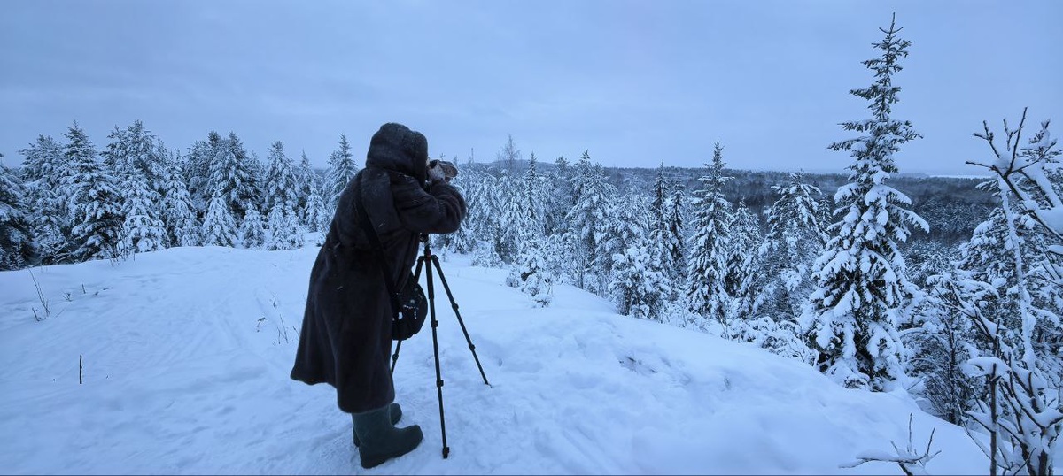 173,6 метров. Представьте, ее принес ледник из Карелии! То есть, тут в течении невероятно долгого времени был край ледника, с него, что называется, "натекло"! Ядро горы - известняк, сверху она вся усеяна валунами из кварцита, гранита, диабаза. Плюс массы песка. Тающий ледник залил тут всё этими грязевыми отложениями. Тут веками добывали известь. Смешанная с куриными яйцами, она становится великолепным связующим веществом для строительства храмов и каменных домов. Но, слава Богу, всю гору не стесали. Теперь в национальном природном парке "Русский Север" (Володская область) это одна из трех высочайших вершин. Еще есть Цыпина гора и Маура. Но именно Сандырева отличается тем, что с нее открывается потрясающая панорама. Просто эта известняковая гора не сильно покрыта лесом. Впрочем, под толстым слоем снега не видно известняков. А лес вокруг оказался все-таки частый и сказочный... #di_vito