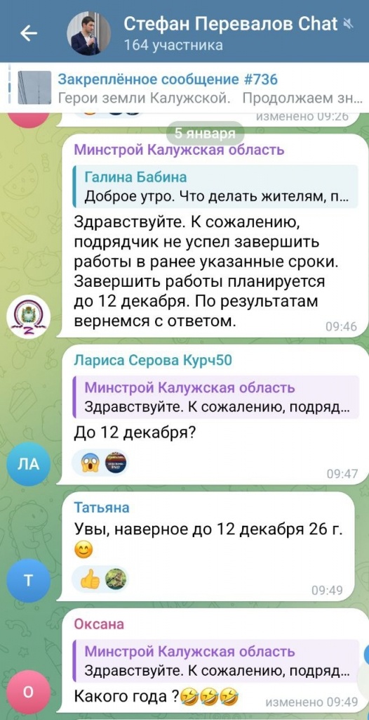 Благостные заверения строителей и коммунальщиков о том, что капремонт в доме на проспекте Ленина, 6/4 будет завершен с небольшой задержкой, и к этому времени в квартирах ликвидируют погром, образовавшийся в результате деятельности нерадивых ремонтников. « Что делать людям в доме без крыши? В квартирах дождь, телефоны подрядчиков отключены,» — интересовались жильцы у властей в октябре. — На вопрос от 31 октября 2025 года от жителей дома по проспекту Ленина 6/4 Министерство строительства и ЖКХ Калужской области умудрились ответить 5 января 2026 года: «завершить работы планируется до 12 декабря»! ПОЗОР!!! – возмущаются жильцы. — Кто в руководстве региона позволяет так работать чиновникам и за такую «работу» нагло получать зарплату из карманов налогоплательщиков? В принципе, чиновники не соврали: закончить работы, действительно, могли планировать до 12 декабря. Могли планировать даже до 1 сентября. В ответе же не написано, что работы закончат, сообщается, что «планируется». С тем же успехо
