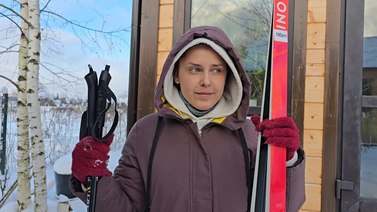 Маша хотела попробовать покататься на лыжах ещё прошлой зимой, но тогда нам нормального снега не дали.