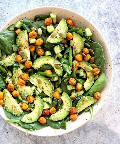 Рецепт родился в один суматошный вечер, когда гости пришли внезапно, а в холодильнике было минимум продуктов. Немного импровизации — и простые ингредиенты заиграли так, будто вы провели на кухне целый вечер. Этот салат — про тёплую текстуру, контраст вкусов и визуальную эффектность: хрустящий нут, кремовое авокадо и яркие черри создают картину «дороже, чем стоит». - Нут консервированный — 1 банка (400 г), слить жидкость