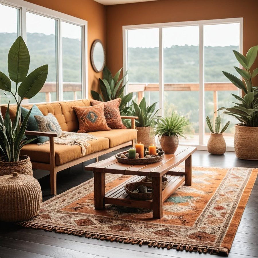 Стиль бохо-шик в интерьере характеризуется яркими и насыщенными цветами, которые создают атмосферу тепла и уюта. Использование разнообразных текстур - от мягких тканей до грубых природных материалов - делает пространство многослойным и интересным. Элементы декора могут включать ручную работу, антикварные находки и предметы из разных культур, что придает помещению эклектичный вид. Мягкие диваны и пуфы, обитые разноцветными тканями, становятся центром притяжения.
