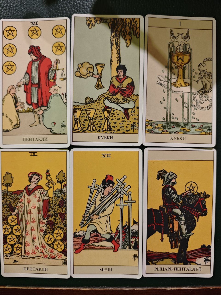 Карты Пентакли 6 и Кубки 4 показывают внутренний перекос.