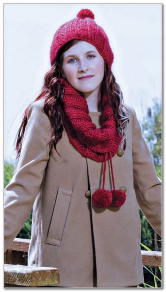 Вам потребуется: пряжа Twilleys Freedom (100% шерсть, 50 г/50 м) - для шапки 150 г и для снуда 200 г темно-красного цвета, спицы 9.00 мм и 10.00 мм.