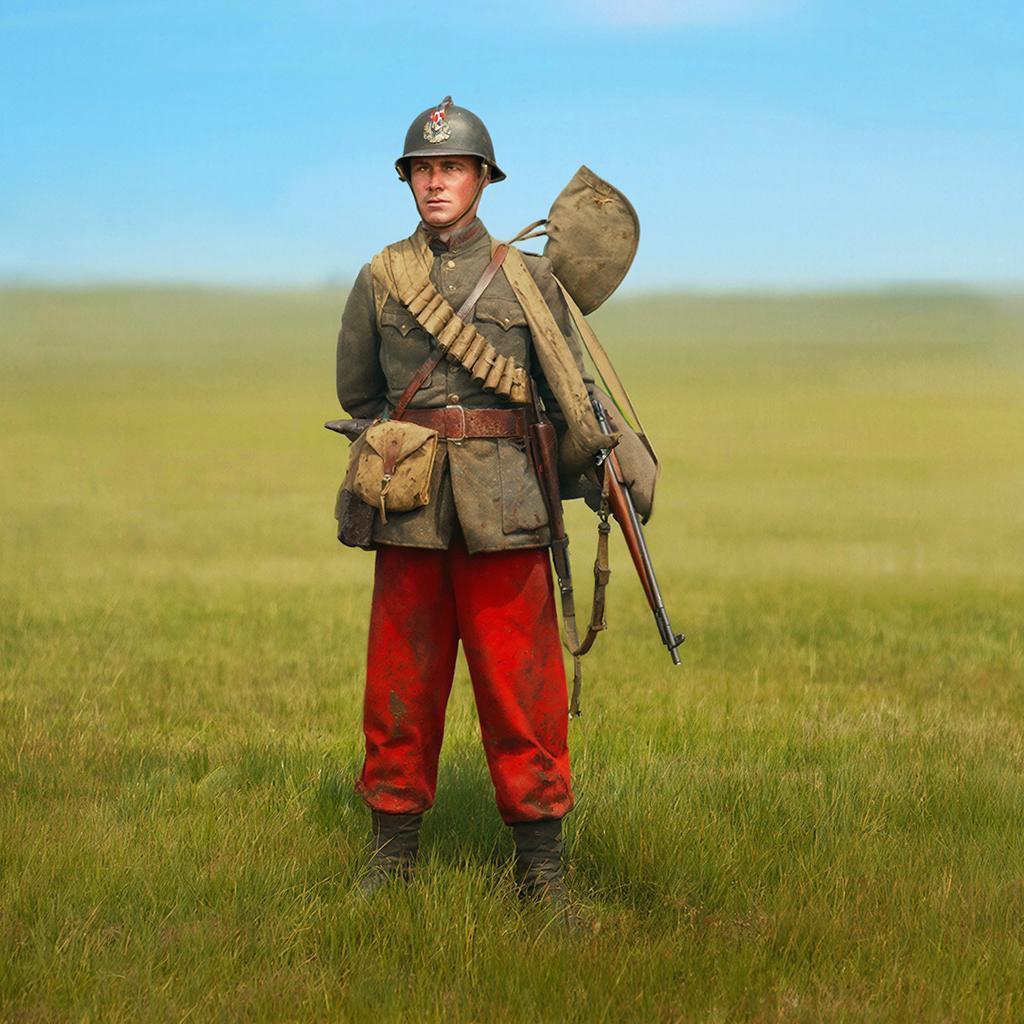 Война 1914 года стала серьезным испытанием для французской армии. Новые технологии, пулеметы и артиллерия сделали яркую форму смертельно опасной. Немецкие войска легко находили цель в лице француза, выделявшегося яркими штанами на фоне полей сражений. Статистика потерь была ужасающей...
