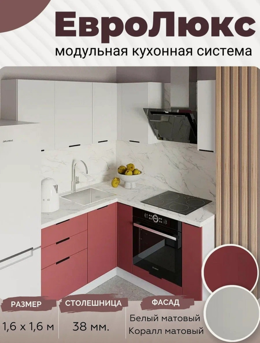 Угловой кухонный гарнитур ЕвроЛюкс МДФ 1,6х1,6 м в цвете "Коралл матовый/Белый матовый" – это инвестиция в комфорт, стиль и функциональность вашей кухни. Он привнесет в ваш дом тепло, уют и современный шарм, став любимым