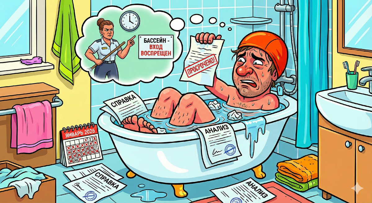 Решил я намедни, граждане, укрепить свой потрепанный организм посредством погружения в жидкость. Спина, знаете ли, намекает. Требует невесомости и хлорки. Душа просит полета, а тело - гидромассажа. Явился я, значит, в бассейн. В глазах решимость, в сумке - резиновая шапочка цвета бешеного апельсина. Но вахтерша, дама монументальная и суровая, как памятник правосудию, меня не пустила. Преградила путь шваброй. Документ, - говорит, - имеется? Какой, - спрашиваю, - документ? У меня абонемент оплачен. Вон, в телефоне QR-код светится. Код ваш, - отвечает, - можете роботу-пылесосу показывать. Мне справка нужна. Что вы не заразный элемент и грибок в общественные воды не занесете. Без бумажки с печатью вы для нас - биологическая угроза. Делать нечего. Поплелся я в поликлинику. Думал, в наш век цифровизации это дело одной минуты. Наивный я человек. Технологии, конечно, шагнули вперед, но бюрократия им подножку подставила. Захожу в кабинет. Там сидит терапевт. Лицо у него усталое, как у человека,