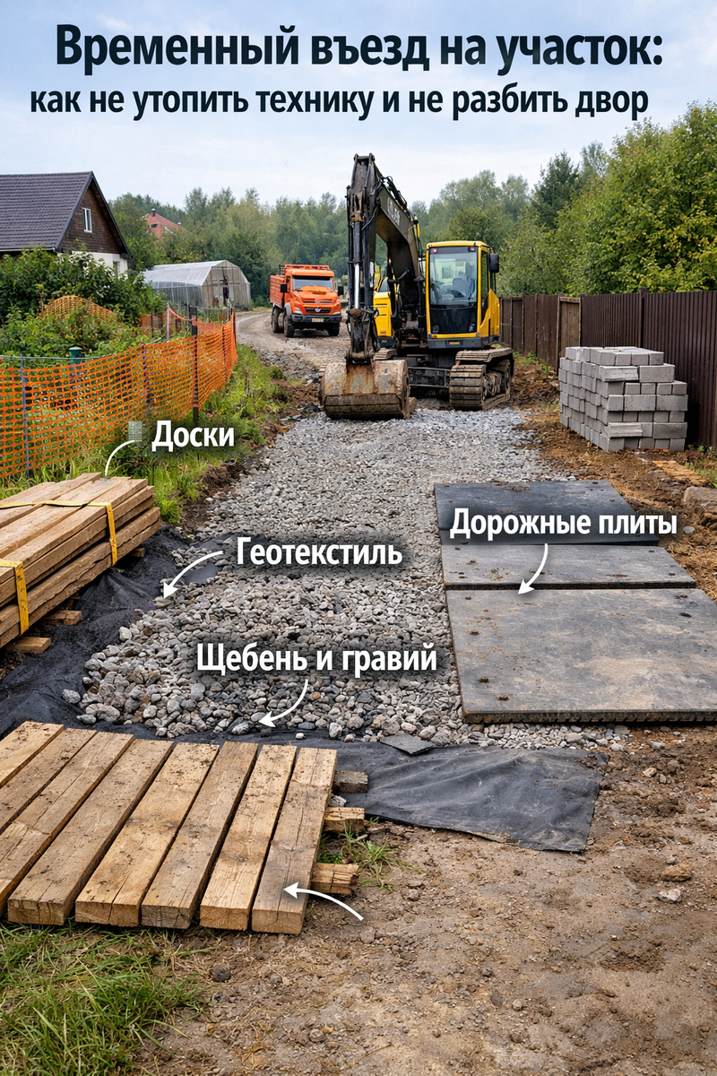 На частной стройке есть две вещи, которые “не видно в проекте”, но которые могут убить и бюджет, и нервы: вода и подъезд. И если с водой люди ещё как-то думают, то с въездом обычно получается по-русски: “да заедут как-нибудь”. Потом КамАЗ сел на брюхо. Миксер не смог развернуться. Манипулятор встал так, что стрелой не достаёт. И начинается цирк: таскать мешки вручную, искать трактор, чинить двор, ругаться с водителями. И самое обидное — это всё почти всегда можно было предотвратить одним правильным решением: сделать временный въезд на участок и небольшую площадку для техники. Техника приезжает тяжёлая.