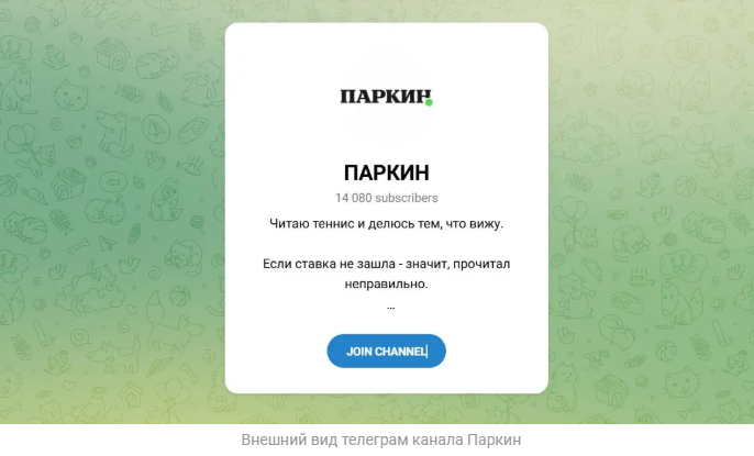 РАБОЧИЙ МЕТОД ЗАРАБОТКА На проекте ПАРКИН пользователям предлагают заработок на спортивных ставках. Бесплатные и платные прогнозы выходят на большой теннис. Каппер Дмитрий @ParkinExpert ведет собственную статистику и делится отзывами клиентов. При проверке отмечено, что заявленная отчетность липа, так как аудитории по экспрессам показывают исключительно выигрыши. Отзывы в сети не появились, но канал только начинает набирать обороты. РАБОЧИЙ МЕТОД ЗАРАБОТКА Основание сообщество произошло 27 сентября 2024, первые материалы в ленте появились несколько дней спустя. Вначале велась очень вялая деятельность, стабильно посты стали выходить только в марте 2025 (по сути, каналу всего несколько месяцев). Для привлечения новых подписчиков постоянно закупается реклама в других группах. Сейчас блог насчитывает 14 тыс. человек, за сутки на одну публикацию приходится больше 3 тыс. просмотров, что можно считать хорошей активностью. Комментарии для общения закрыты. Создатель канала Дмитрий Паркин @Pa