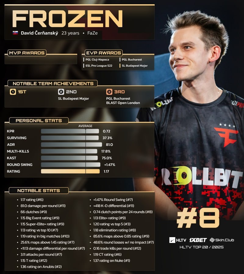πͺπΊ frozen Π·Π°Π½ΠΈΠΌΠ°Π΅Ρ 8 ΠΌΠ΅ΡΡΠΎ Π² ΡΠ΅ΠΉΡΠΈΠ½Π³Π΅ Π»ΡΡΡΠΈΡ ΠΈΠ³ΡΠΎΠΊΠΎΠ² ΠΎΡ HLTV