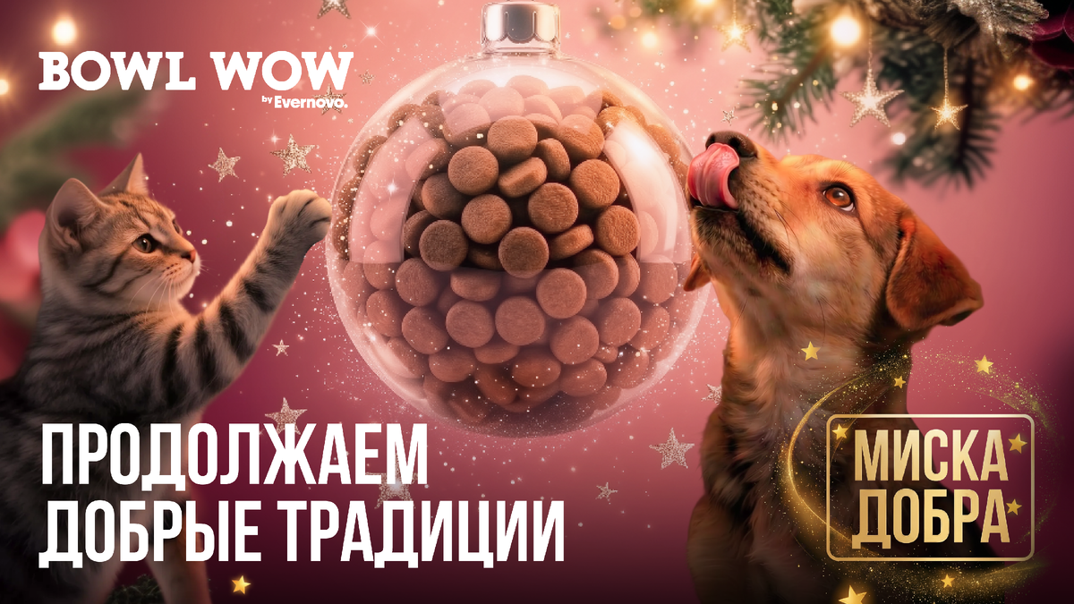 Пока салаты доедаются, а любимые фильмы пересматриваются, хотим поздравить вас с Новым годом и напомнить о волшебной акции «Миска добра». Мы с основания BOWL WOW помогаем приютам, а в наступившем году хотим делать это вместе с вами. И для этого не нужно выходить из дома и прерывать праздники в кругу близких. Всё просто: Для вас — пара минут, а для хвостика — полная миска и капелька новогоднего чуда. Пусть забота станет нашей общей традицией в наступившем году! #BOWLWOW #МискаДобра