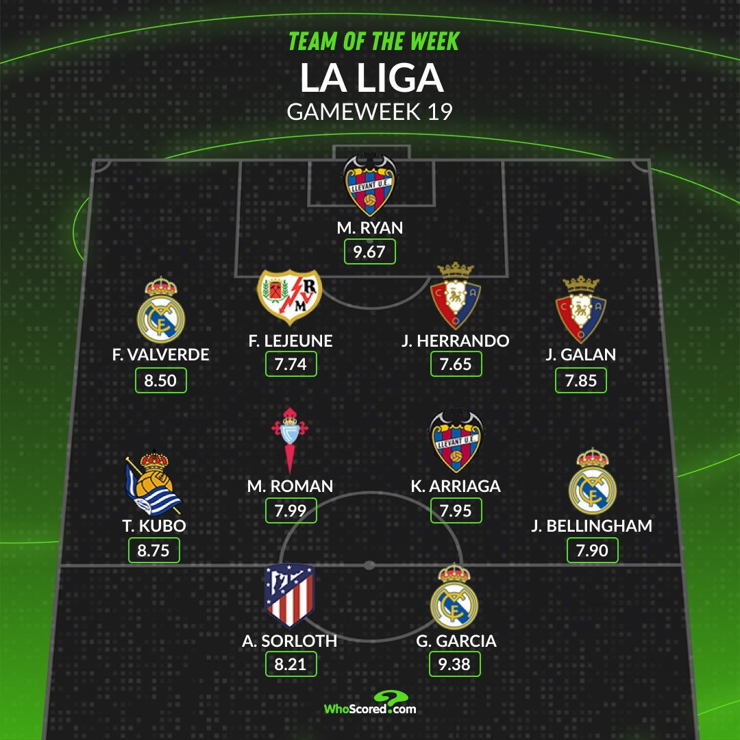 🇪🇸 Сборная 18-го тура (19 матчей провели только 4 команды, ошибка на сайте) LALIGA от WhoScored