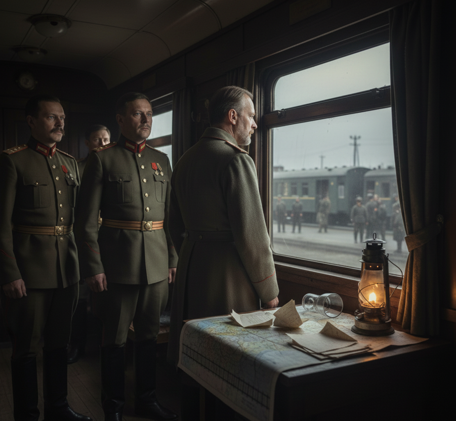 2 марта 1917 года. Царский поезд стоит на станции Псков. В вагоне - император всероссийский. За окном - империя, которая рушится. В дневнике Николай записал: «Кругом измена, и трусость, и обман.» Всё началось неделей раньше. 23 февраля в Петрограде вспыхнули беспорядки. Хлебные очереди, забастовки, демонстрации. Николай был в Ставке, в Могилёве. Получал телеграммы. Ничего серьёзного. Скоро успокоится. 27 февраля солдаты Петроградского гарнизона перешли на сторону восставших. Полиция разбежалась. Правительство потеряло контроль над столицей. Николай приказал отправить войска для подавления. Войска не дошли. Железнодорожники отказались везти. 1 марта царский поезд повернули на Псков. В Петроград путь был закрыт. На станции Николая ждали генералы Рузский и Данилов. Они принесли телеграммы от командующих фронтами. Все просили отречения. Брусилов. Эверт. Сахаров. Колчак. Каждый, на кого Николай рассчитывал. Генерал Алексеев написал из Ставки: армия не поддержит подавление. Только отречение