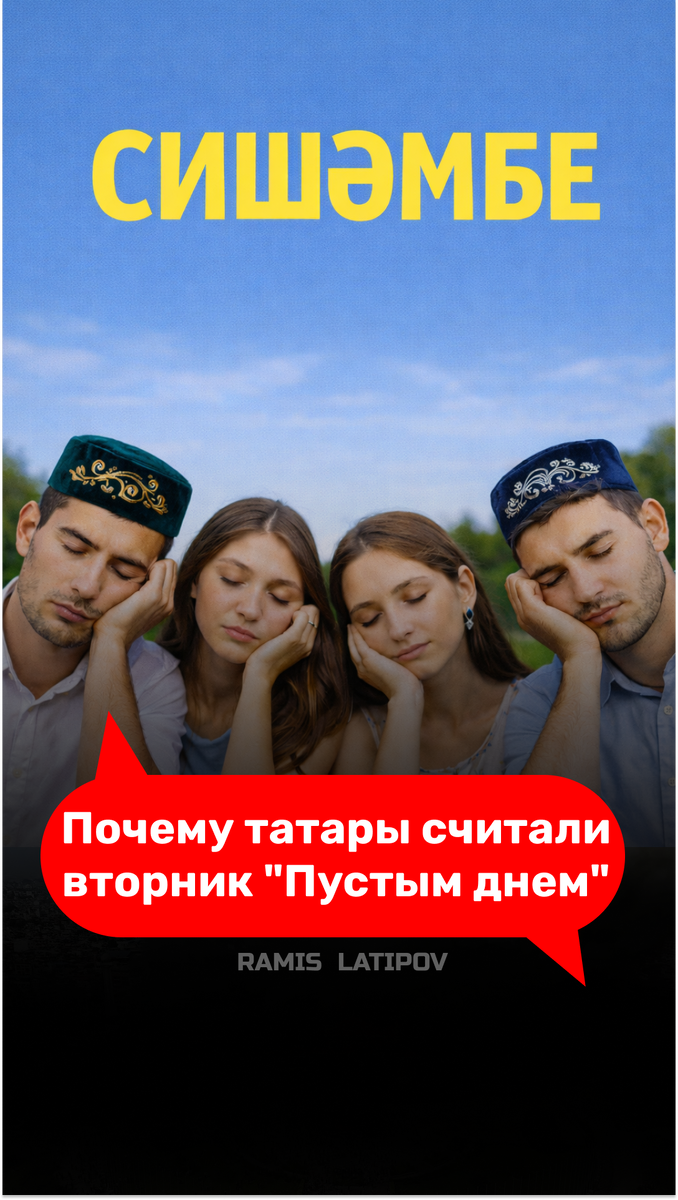 Говорят, понедельник — день тяжёлый. А у татар тяжёлым днём считается вторник — сишәмбе. Считается, что во вторник нельзя начинать новое дело, создавать семью, отправляться в дорогу. Даже мыть полы, стирать бельё, стричь ногти: верили, что это может привести к ссорам. Вторник считался днём ручного труда, пустым днём — бушкөн. О том, что во вторник не стоит начинать дела, как-то упоминал и первый президент Татарстана Минтимер Шаймиев. Будучи студентами, нас отправили на уборку картофеля в деревню Старый Яваш Арского района. Приехали в понедельник после обеда, но председатель колхоза настоял, чтобы мы вышли в поле хоть на несколько часов: мол, во вторник начинать работу нельзя, иначе дело пойдёт неудачно. И действительно, картофель мы успели убрать. Если бы начали во вторник, не управились бы и к Новому году. Почему так? Согласно некоторым исламским интерпретациям, во вторник Всевышний изгнал Иблиса (Сатану) из Рая и создал Ад; ангел Азраил забирает души умерших; якобы произошли различн