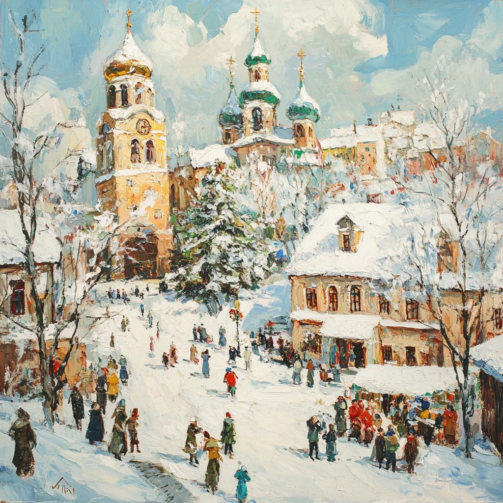 С наступлением сочельника начиналось волшебное время Святок — двенадцать дней зимних праздников. Молодёжь, нарядясь в костюмы, отправлялась колядовать: ходили от дома к дому с песнями-пожеланиями добра, здоровья и богатства хозяевам, славили рождение Христа. Радостные колядки, по поверьям, оберегали деревню от всякого зла и привлекали удачу. Было большим грехом не одарить колядующих — щедрое угощение считалось залогом счастливого года для дома.