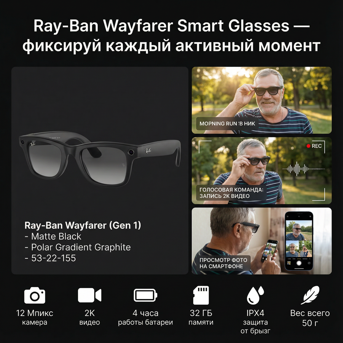 Представьте: вы идёте по солнечной набережной, лёгкий бриз шевелит волосы, а в ваших глазах — не просто отражение мира, но и его цифровая копия. Нет, это не сцена из sci-fi фильма. Это реальность, которую дарят умные очки Ray-Ban Wayfarer Gen 1. Эти иконы стиля, родом из классической коллекции Ray-Ban, теперь оснащены передовыми технологиями, чтобы сделать вашу жизнь ярче, проще и полнее моментов. Давайте разберёмся, почему эти очки — не просто аксессуар, а настоящий компаньон для современного человека. Классика в новом обличии: Дизайн и комфорт