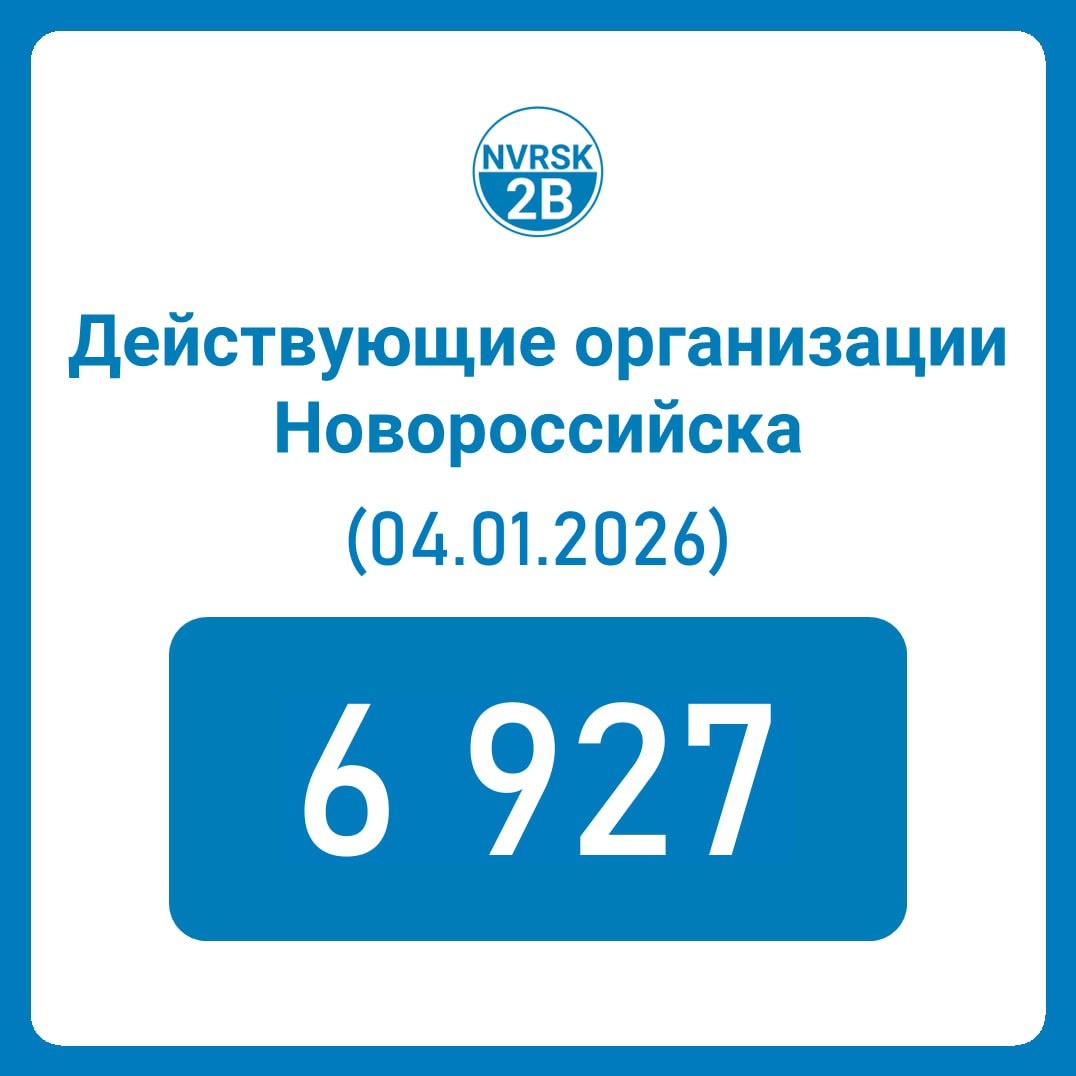 Действующие организации Новороссийска (04.01.2026) #active_companies_nvrsk Бизнес в Новороссийске По данным электронного сервиса «Прозрачный бизнес» ➤ Действующих организаций: 6 927 ➤ В процессе банкротства: 116 ➤ Ожидают исключения из ЕГРЮЛ: 261 ➤ Процесс реорганизации: 23 ➤ В процессе ликвидации: 25 Подписаться на Бизнес в Новороссийске Навигация в закрепленном сообщении 🧭 ㅤ