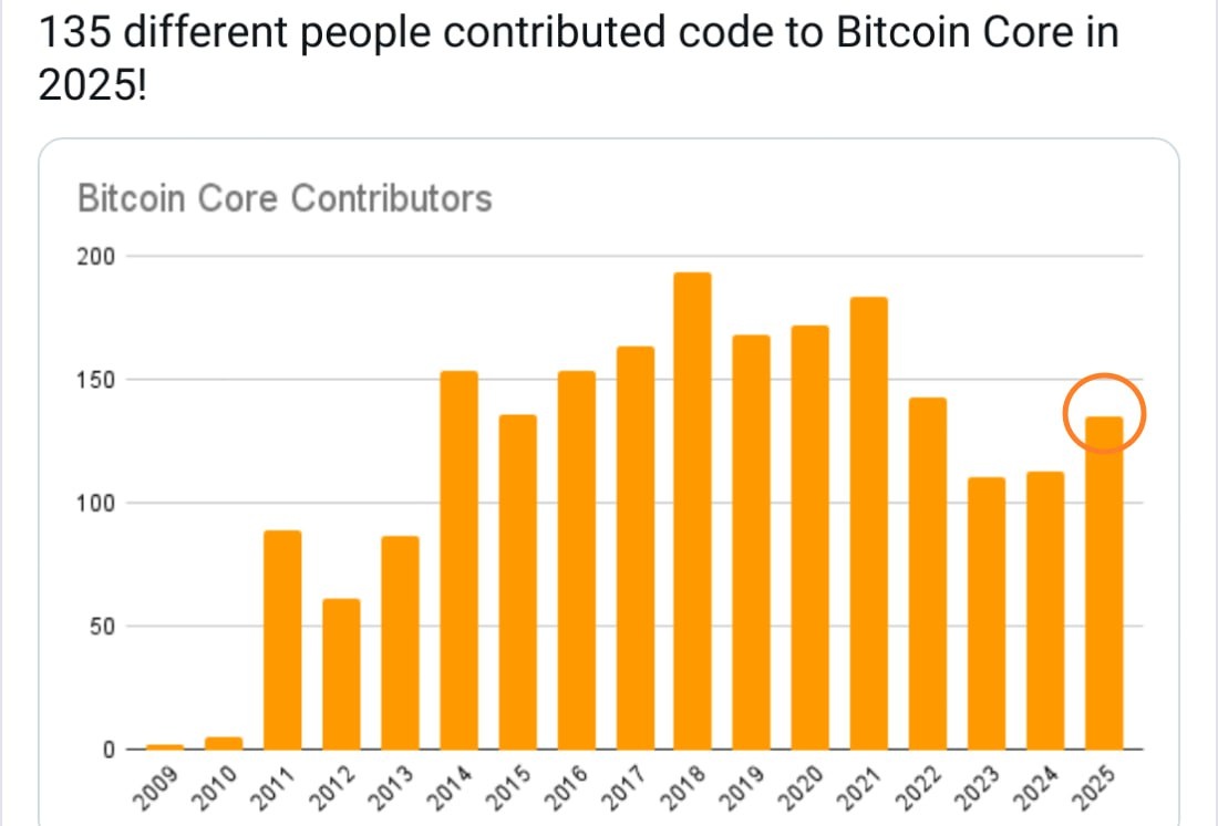 Активность разработчиков BTC значительно выросла в 2025г