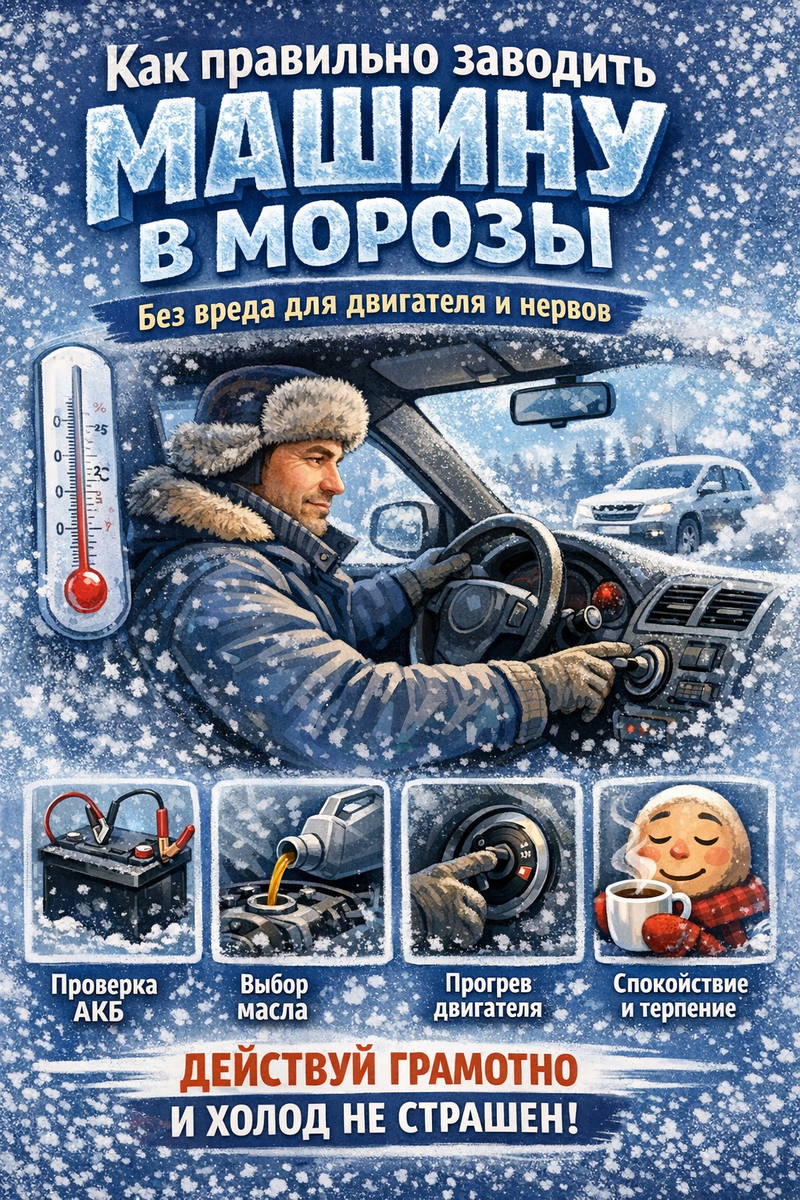 Главный страх — «вдруг я сейчас что-то сломаю». На самом деле всё проще, чем кажется. Зимой большинство ошибок совершают не из-за холода, а из-за неправильных привычек. Ниже — понятная и безопасная схема запуска автомобиля в мороз, которая реально работает. Современный двигатель не требует сложных ритуалов.