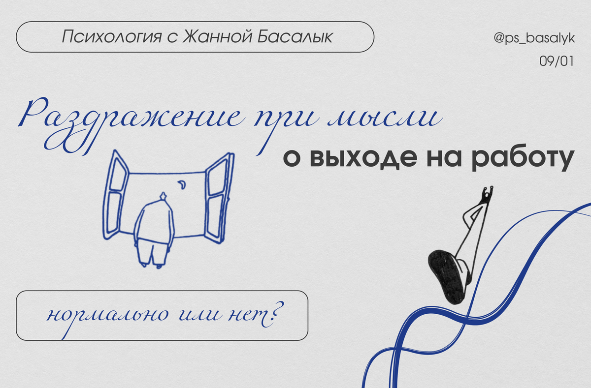 «Слишком быстро. Слишком много. Мне нужен переход». И это абсолютно нормальная реакция здоровой нервной системы. Если раздражение: это может говорить о накопленном выгорании, а не о самом факте выхода на работу. Вы не слабые, не ленивые. Вы просто живой человек, чья психика перестраивается обратно в рабочий режим. в моем телеграм канале: "Психология с Жанной Басалык" #психология