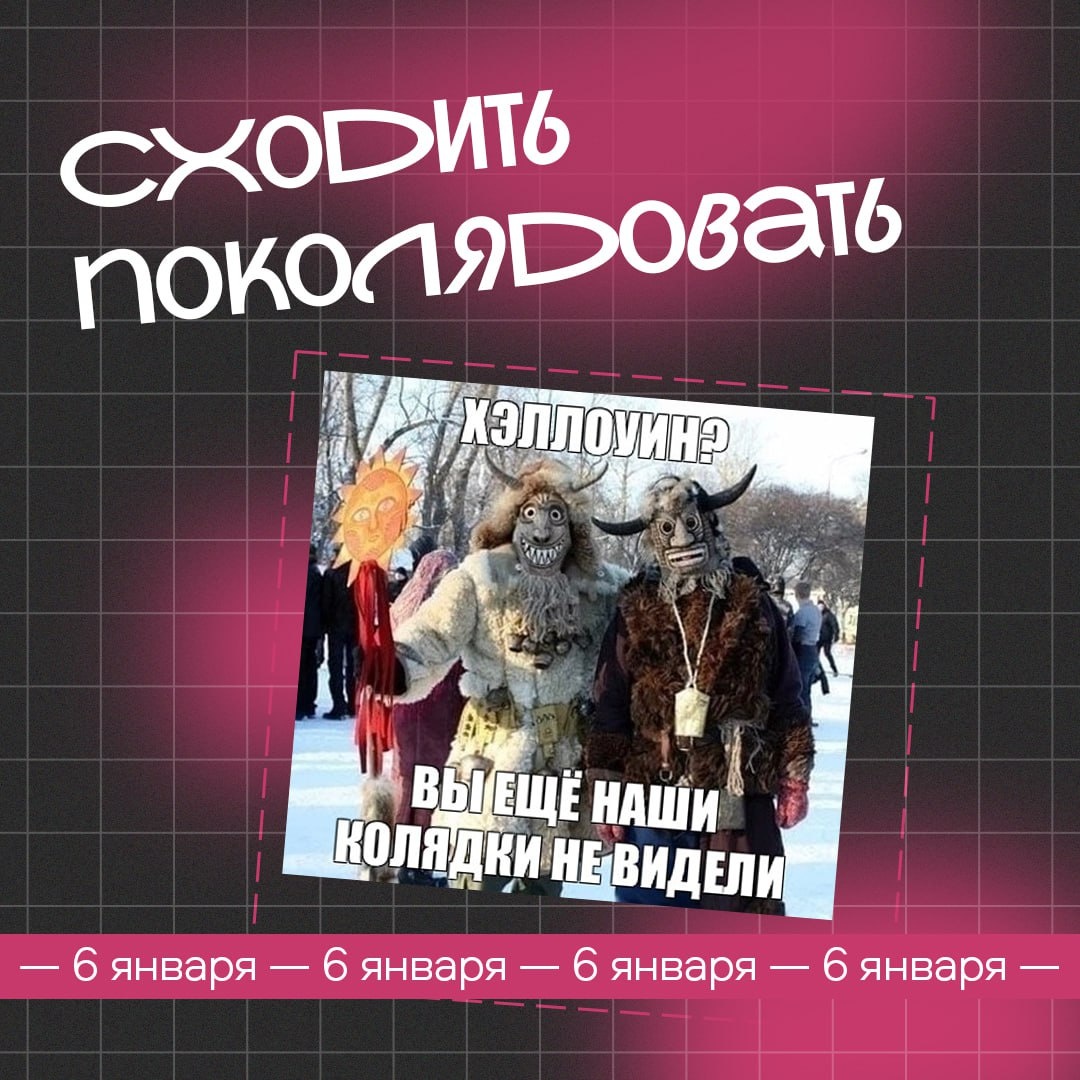 В Древней Руси Коляда был одним из почитаемых и любимых праздников Он знаменует поворот солнца с зимы на летнее время. Второе его название – Сочельник. В народе – один из популярных праздников наравне с другими обычаями. Чтобы посмотреть, что и где сегодня происходит в крае, предлагаем обратиться к интерактивной новогодней онлайн-карте Забайкалья. #Новости Предложить публикацию:@zabkulisye_bot