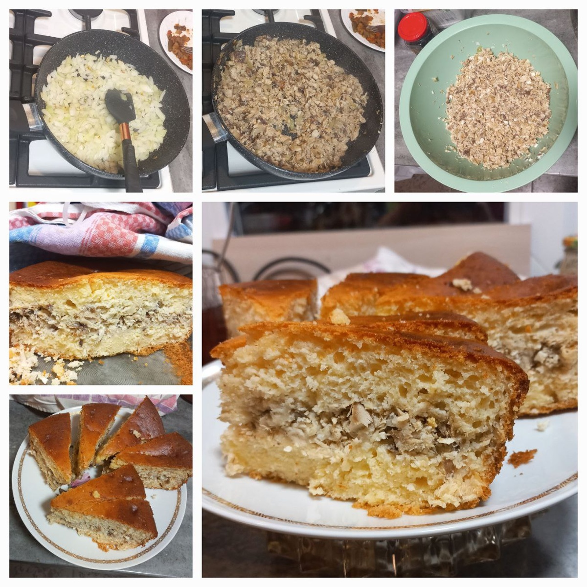 Тесто (расчет на форму 24 см): 5 яиц С0 200 мл майонеза (Слобода оливковый - меньше) 160-200 мл домашний йогурт (греческий теос - 250 г) 13 г разрыхлитель Др. Бейкер, можно побольше Соль, сахар по вкусу. 200-220 г любая универсальная мука без глютена Гарнец Начинка В этот раз рыбная из лакедры (желтохвост) 500-700г сырого веса рыбы Крупная луковица 1 шт Яйца 2-4 шт. Рыбу разделать и отварить, можно на пару, или запечь в фольге. Яйца отварить и очистить от скорлупы. Отварную рыбу снять с костей, мелко нарубить и сбрызнуть лимонным соком. Лук нарезать квадратиками и и пассеровать в сотейнике, в процессе посолить. Добавить рубленую рыбу в фарш, перемешать, сбрызнуть лимонным соком, при необходимости добавить еще масла и потушить, периодически помешивая. Готовый фарш с луком положить в миску на бумажное полотенце. Остывший фарш переложить в другую миску, добавить мелко нарубленные яйца, перемешать. Фарш готов. Приготовление⬇️