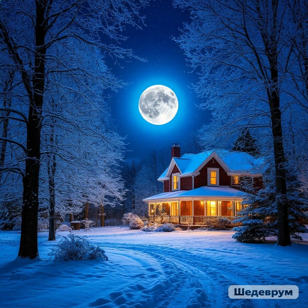 Синим кругом светится луна,