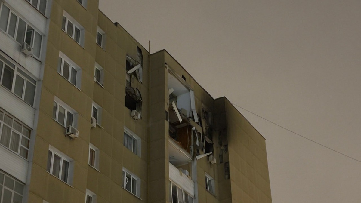Кадры с места падения обломков БПЛА в многоэтажный дом в Твери