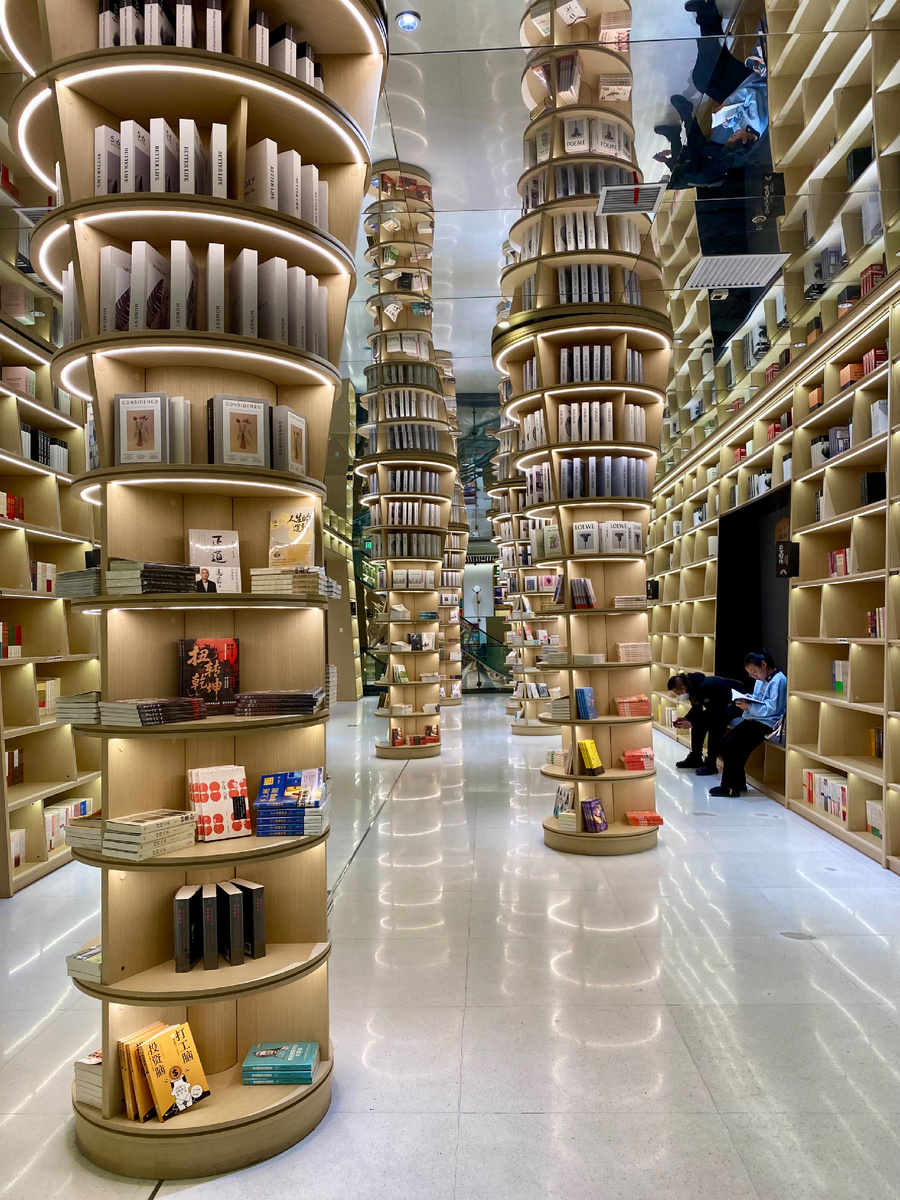 В этом магазине интересный дизайн каждого этажа, где можно неспешно прогуляться и даже выпить кофе. Посмотреть китайские книги и посидеть в тишине.