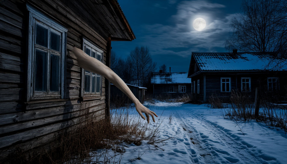 Она вытянулась на метр. Потом на два. Локтевого сустава я не увидел. Конечность просто вытекала из дома, удлинялась, как тесто, ползла по воздуху через двор.