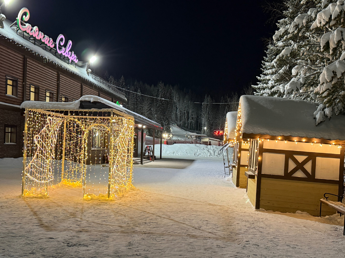 На горнолыжной базе «Сияние Севера», подъемники работают до -25°.