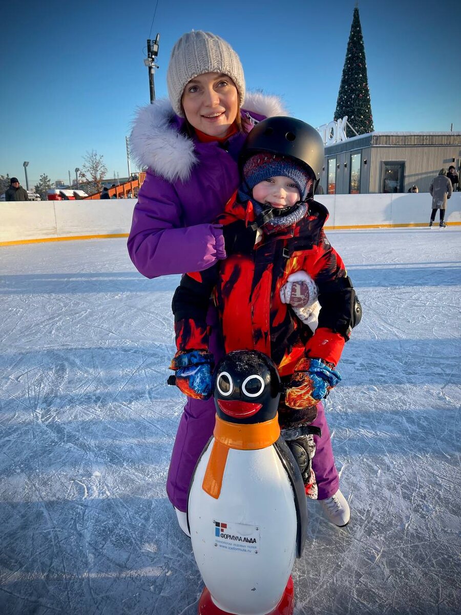 Дед Мороз подарил Лехе коньки. Поехали опробовали.