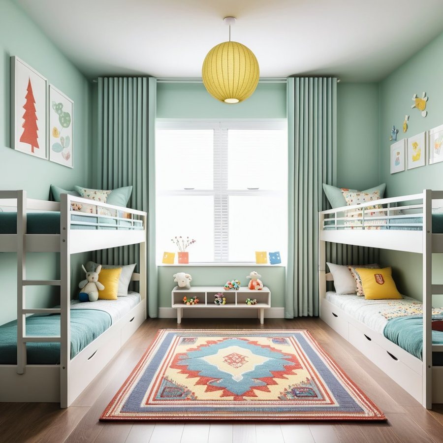 Также стоит обратить внимание на декоративные элементы, такие как постеры, наклейки или текстиль. Каждому ребенку можно выделить собственные акценты - например, тематические шторы или подушки. Разнообразие в текстурах и материалах сделает пространство более интересным и уютным. Важно, чтобы каждый элемент отражал личность ребенка, создавая гармоничное и вдохновляющее пространство для игры и учебы.