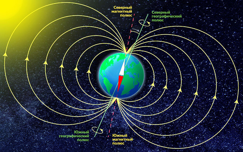 Инверсия магнитного поля Земли — это процесс, при котором северный и южный магнитные полюса меняются местами. Это явление происходит нерегулярно и занимает от нескольких сотен до нескольких тысяч лет. Последняя инверсия случилась примерно 780 тысяч лет назад.