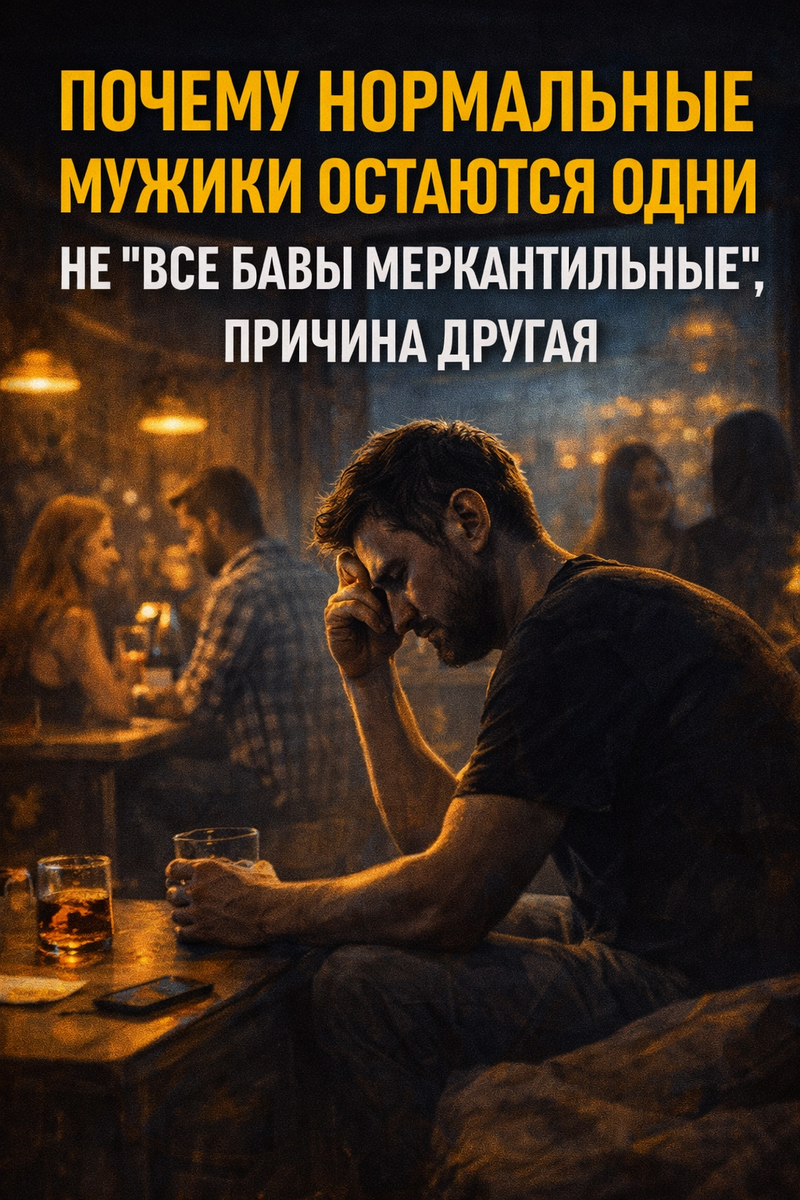 Сказал — и вроде всё объяснил. И вроде не виноват никто, кроме мира. Только вот проблема: нормальные мужики реально остаются одни. Не потому что “плохие”, не потому что “страшные”, не потому что “бедные”. А потому что у них включается одна вещь, которую они сами считают силой. Причина другая. И она неприятная. Он может тащить работу, кредиты, проблемы, родителей, ремонты.