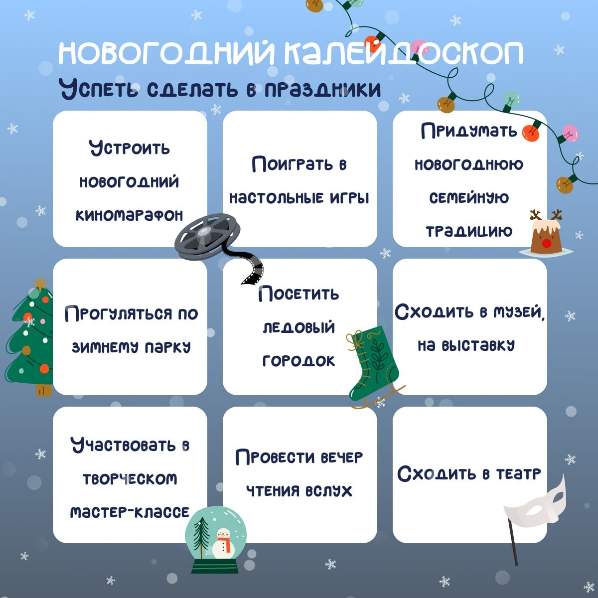 ❄️Загляните в наш событийный калейдоскоп и отметьте, что вы уже осуществили в новом году, а какие пункты можно взять на заметку.