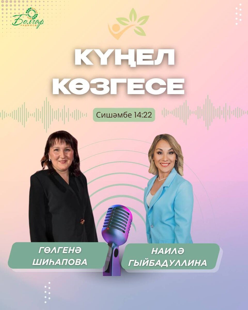 Бүген «Болгар радиосы»ның «Күңел көзгесе» тапшыруында «Ватаным Татарстан» журналисты, хәйрия эшләре алып баручы Гөлгенә Шиһапова булачак
