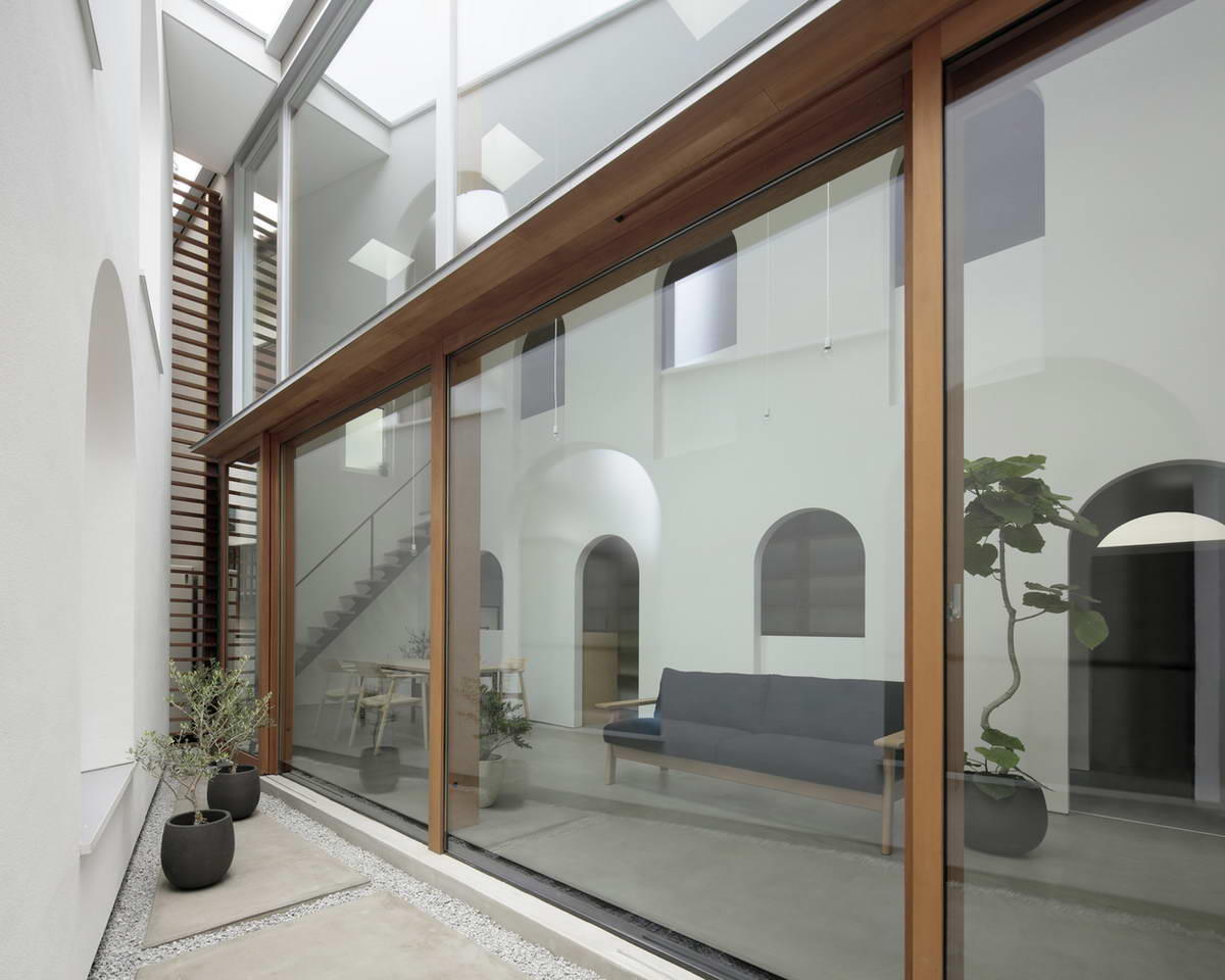 Дом в Асаке — это первый особняк для семьи из четырёх человек, давно проживающих в съёмной квартире. «Мы хотели бы, чтобы в нашем новом доме царили тишина и уют, и в то же время мы хотели бы иметь сад, который привносит в дом ощущение открытости». Это был список желаний, которым поделился со архитектором заказчик перед началом проектирования. Проектируя этот дом под темой «Согласованность и несоответствие», автор хотел продемонстрировать свой способ создания ощущения уюта, открытости и простора в закрытом доме. Дом в Асаке расположен в плотном жилом районе примерно в 10 минутах ходьбы от ближайшей железнодорожной станции. Участок правильной формы, шириной 10 метров и глубиной 10 метров находится в исключительно малоэтажной жилой зоне первой категории с коэффициентом покрытия застройкой 60% и соотношением площади застройки 100%. Узкий тупик шириной 4 метра к северу перед домом с соседними домами, построенными в непосредственной близости со всех четырёх сторон участка, затрудняет разраб