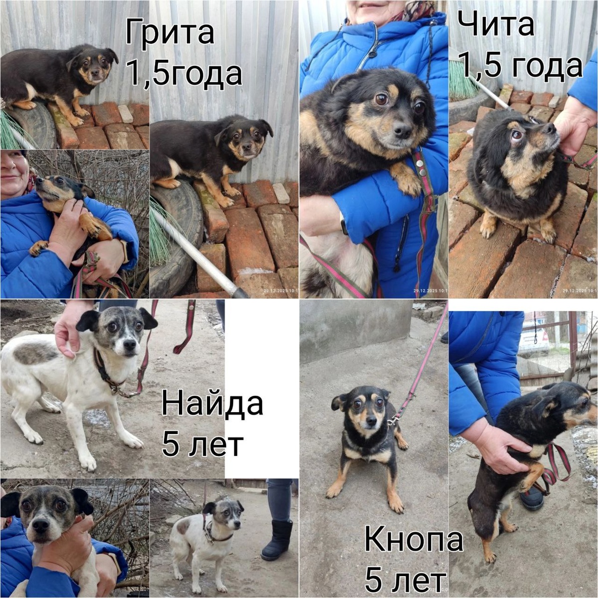 СРОЧНО! СОБАКИ В ОПАСНОСТИ! 🆘 Четыре маленькие собаки-девочки могут оказаться на улице или в отлове. Сейчас они заперты в холодном сарае — хозяйка, пожилая учительница, вынуждена прятать их от агрессивных соседей. У бабушки уже нет сил бороться, она осталась одна и сама тяжело болеет. Собаки не выживут на улице! Они маленькие, домашние, беззащитные. ✅ Все стерилизованы. 🐾 Кнопа и Найда (5 лет). 🐾 Чита и Грита (чуть больше года). Пожалуйста, помогите спасти их от беды! Заслуженный педагог, спасавшая людей годами, просит нас помочь спасти её подопечных. НУЖЕН ДОМ ИЛИ ПЕРЕДЕРЖКА! Сделайте репост — это шанс для них увидеть весну не из-за решетки отлова. +79340639575 #ДневникСпасателя #ХроникиНадежды #Александровское #ПомощьЖивотным #СобакаВДобрыеРуки