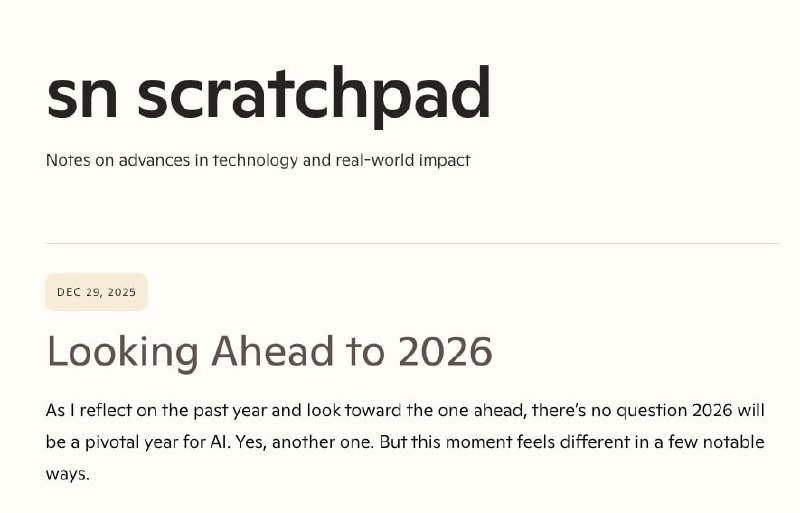Сатья Наделла, генеральный директор Microsoft, написал заметку про взгляд на AI в 2026 году. Он говорит, что с мы вступаем в фазу широкого распространения технологии и у нас уже есть представление куда она движется (пупупу, куда?) Фактически, это переход с 4 (склон просветления) на 5 этап (плато продуктивности) по циклам технологического хайпа Гартнера. И знаете, наверное это так, если считать пользователями ИИ всех посетителей яндекса или гугла. А еще сколько людей не знают, что они пользуются результатами ИИ в сервисах и приложениях... Сатья предлагает сфокусироваться на нескольких важных задачах: 📍 Проектирование ИИ для раскрытия человеческого потенциала 📍 Переход от моделей к системам 📍 Как распространять технологию для решения проблем людей и планеты Мы всё ещё находимся на начальном этапе марафона. Многое остаётся непредсказуемым. Это будет сложный процесс открытий, как и всегда в разработке любых технологий и продуктов. Ну как раньше точно не будет. И нам что-то придетс