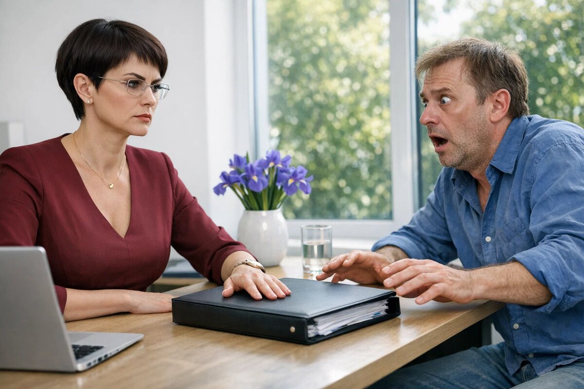 За столом сидела женщина в сером платье. Прямая спина, короткая стрижка, холодное лицо. Она подняла на него взгляд — и он понял: это Надежда. Но совершенно другая.